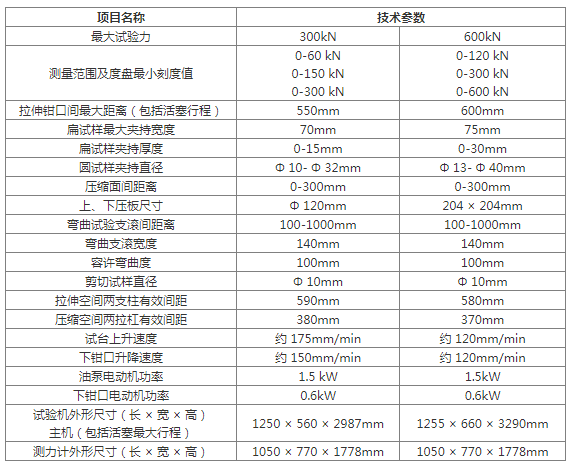 ●WE-300/600型液壓式萬能試驗機主要技術規(guī)格及參數(shù):