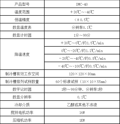 DWC-40/-40℃沖擊試樣低溫槽產(chǎn)品技術(shù)參數(shù):