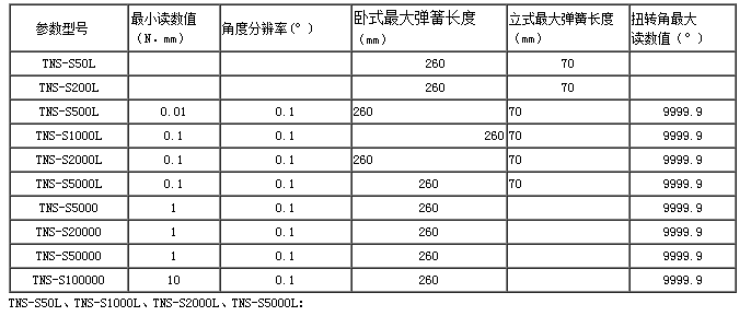 (2)TNS系列技術參數: