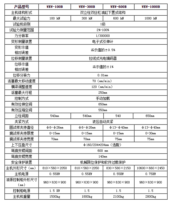 濟南試金WEW-B系列微機屏顯式液壓萬能試驗機主要用于金屬材料的拉伸、壓縮、彎曲等力學性能試驗,增加簡單的附件后可對水泥、混凝土、磚、瓦、橡膠及其制品進行檢測。